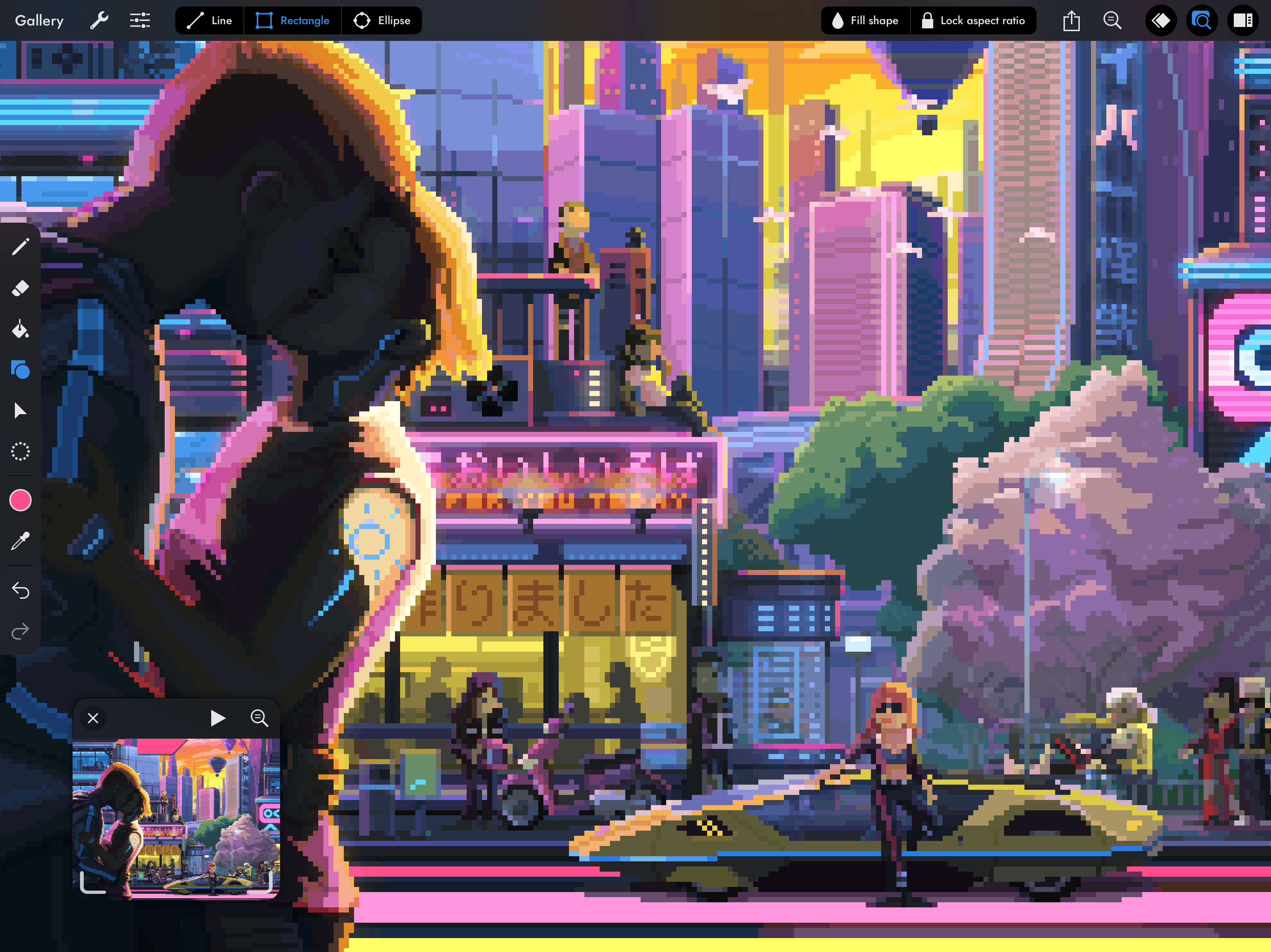 Pixaki is packed with great tools dedicated to making pixel art. Drawing on the iPad with Apple Pencil feels smooth and natural. This is the most enjoyable way you can make pixel art.